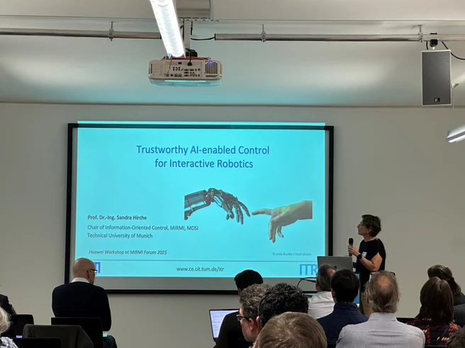 On Nov. 17th, Prof. Sandra Hirche gave a keynote talk at the Machine Intelligence Workshop. This event was hosted by the Huawei & Munich Institue of Robotics and Machine Intelligence (MIRMI) at the Technical University of Munich. Prof. Aaron Johnson from Carnegie Mellon University and Prof. Daniel Cremers from TUM were two other invited speakers. For more info regarding this workshop, please check this website www.mirmi.tum.de/mirmi/aktuelles/article/machine-intelligence-workshop/
